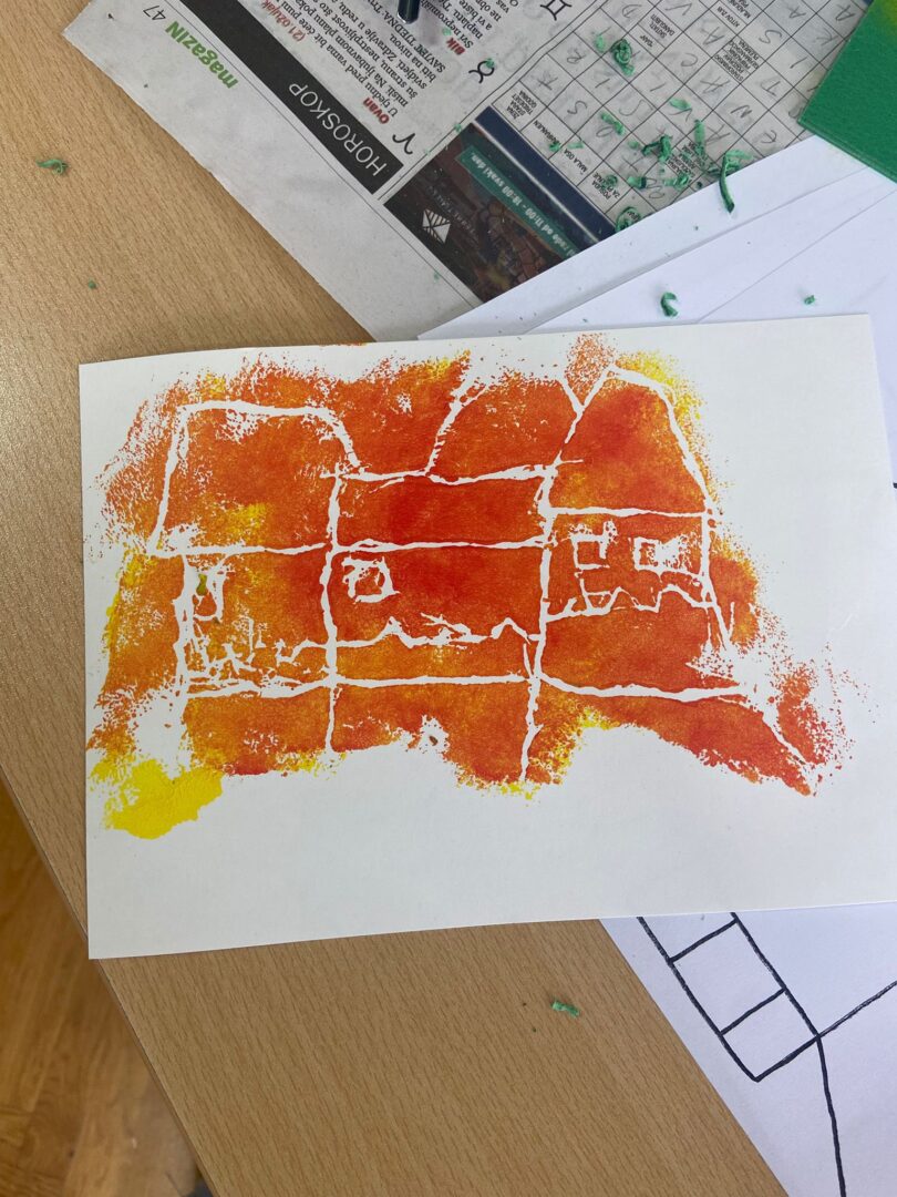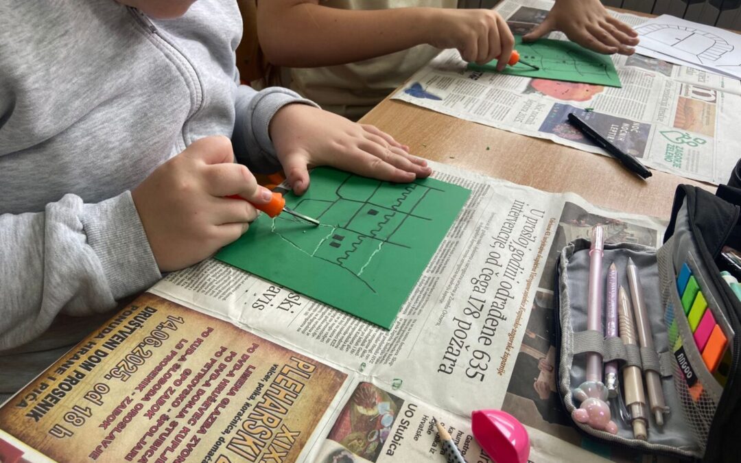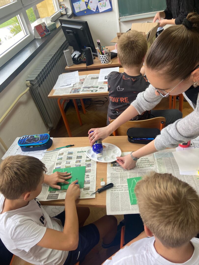 Učenici su na linoleumu izrezivali motive iz Velikog Tabora te ih otiskivali bojom na papir.