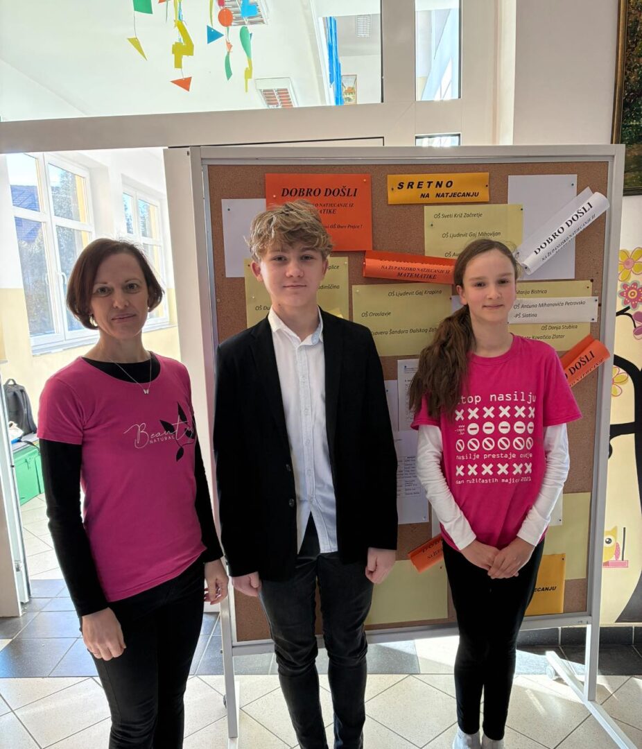 Čestitamo svim sudionicima na trudu i postignutim rezultatima, a posebno smo ponosni na naše najuspješnije matematičare — Ančicu Katunarić Raič i Marka Antolića, kao i njihovu mentoricu Silvu Lončarić.