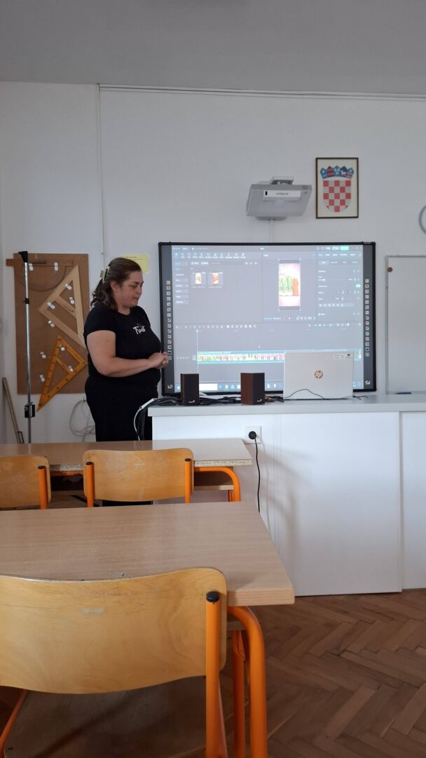 Vjeroučiteljica je sudionike upoznala s aplikacijom za izradu video uradaka te demonstrirala način upotrebe i razne opcije koje aplikacija nudi. Također je učiteljima predstavila načine na koje se aplikacija može koristiti u nastavi i u radu s učenicima, pogotovo darovitim učeniciman i učenicima s teškoćama.